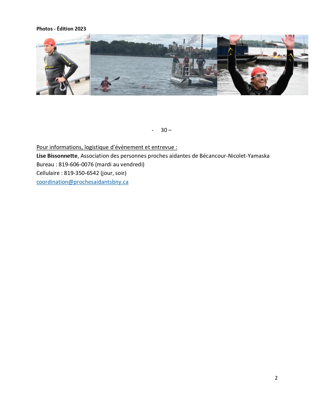Bécancour, le 27 mai 2024 - Monsieur Érik Goudreault est fier de vous inviter à la 2e édition de la traversée à la nage du fleuve St-Laurent qui aura lieu le samedi 24 août 2024.